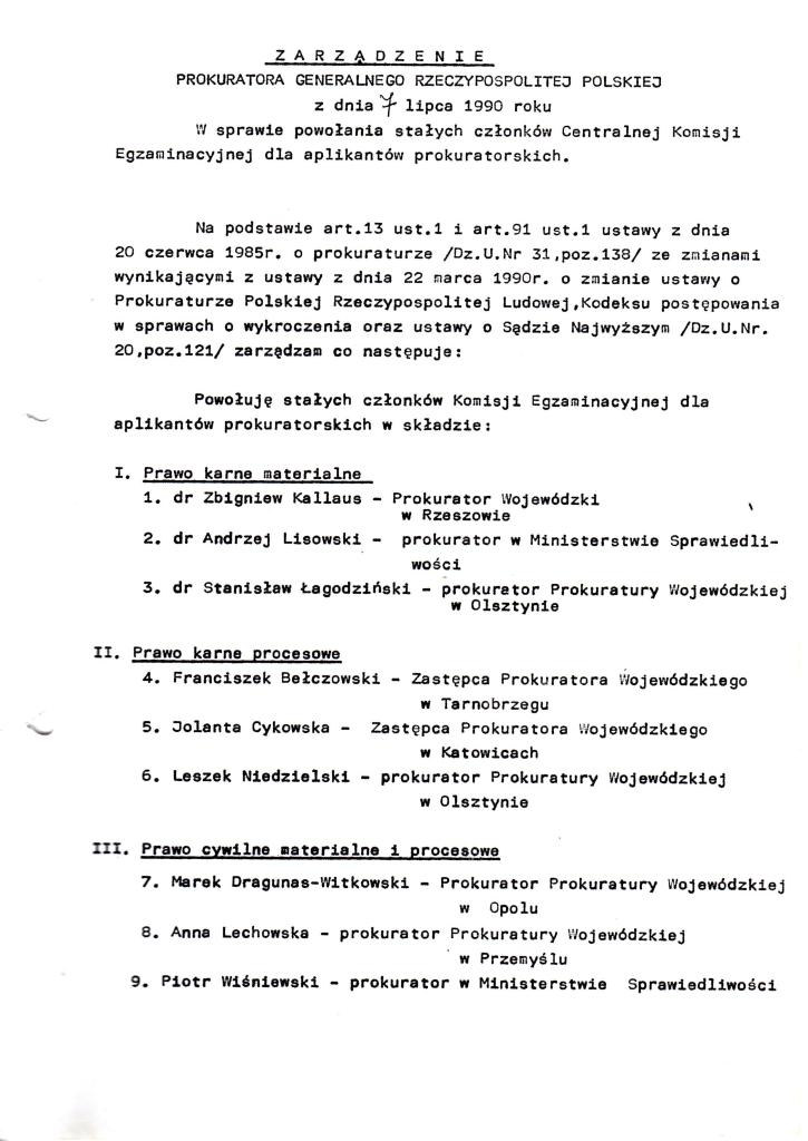 Z tego własnie powodu kopię zarządzenia Prokuratora Generalnego Rzeczypospolitej Polskiej z 7 lipca 1990 r. przechowuję szczególnie pieczołowicie.