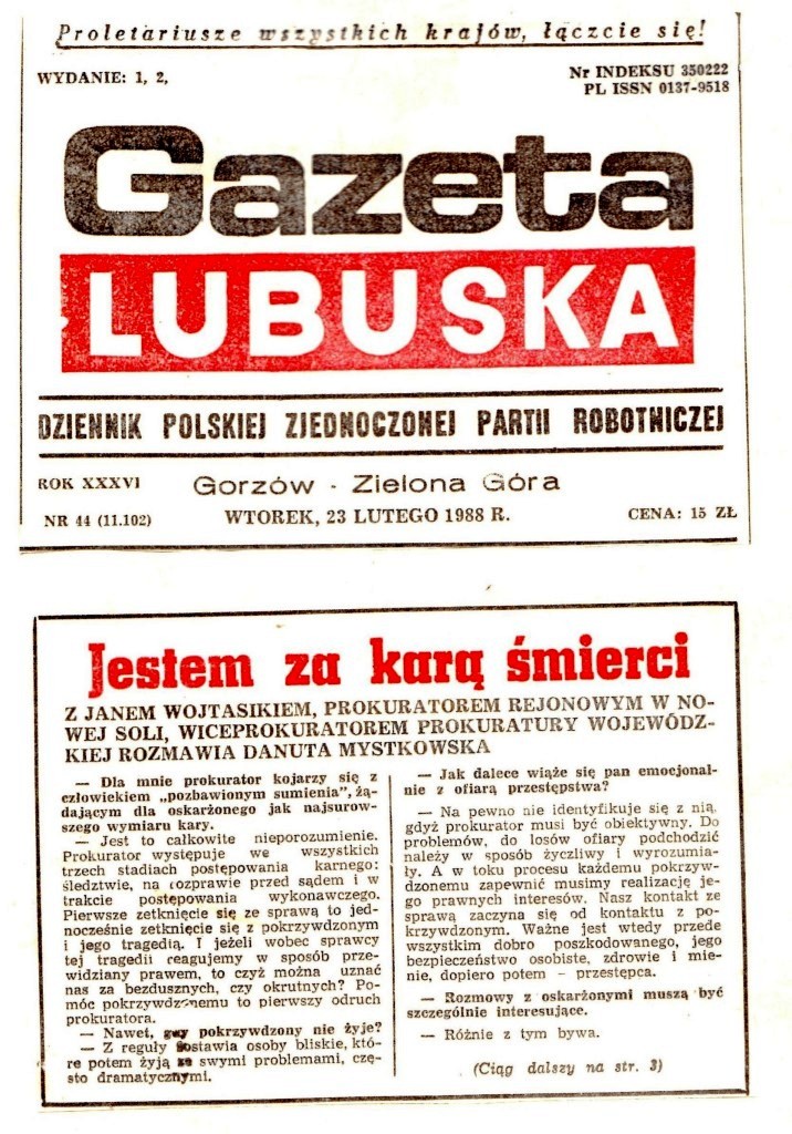 Jestem za karą śmierci, Gazeta Lubuska’ 1988