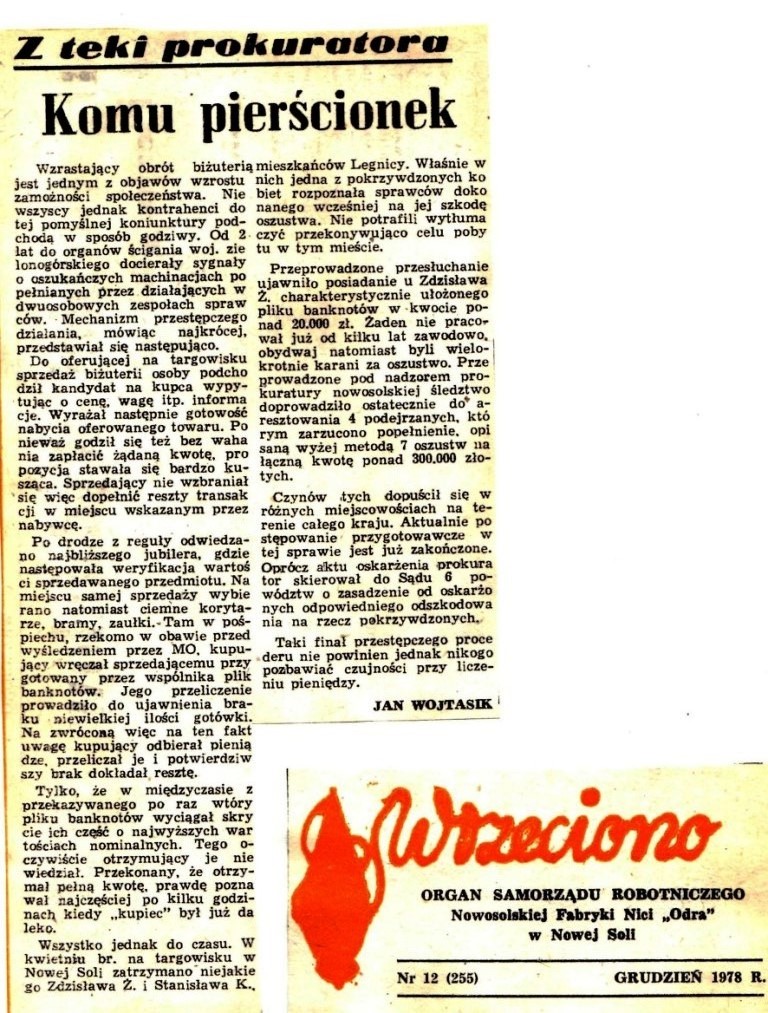 Sprawę opisaną w artykule „Komu pierścionek” zapamiętałem bardziej niż inne z tamtych lat. Złożyło się na to kilka powodów. Jednym z nich było szerokie wykorzystanie ekspertyzy psychologicznej do oceny zdolności spostrzegania i zapamiętywania przez pokrzywdzonych twarzy i postaci innych osób, w tym wypadku podejrzanych.