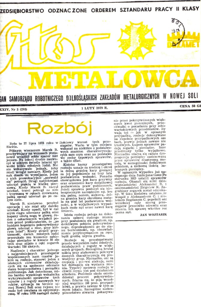 Do pewnego stopnia zostało ono też przeniesione na obszar publicystyki społeczno-prawnej. Znane fakty zawsze starałem się wykorzystać tak, żeby przedstawić czytelnikowi związane z nimi konsekwencje prawne. I jeszcze jednak ważna uwaga: „Głos Dozametu” wcześniej był „Głosem Metalowca” – organem Samorządu Robotniczego Dolnośląskich Zakładów Metalurgicznych w Nowej Soli.