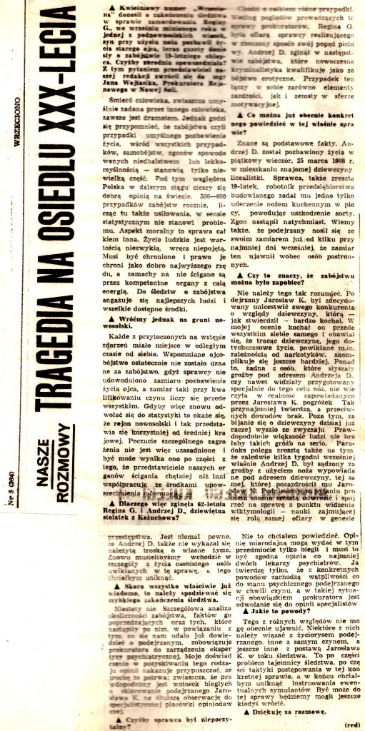 Powikłany stan faktyczny sprawy, różnorakie warstwy psychologiczne i wiktymologiczne zdarzenia sprawił, że red. Jan Reichert postanowił „przesłuchać” osobiście prokuratora.