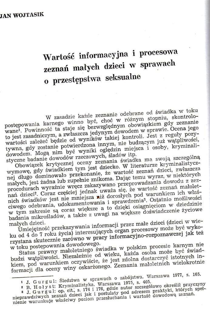 „Wartość informacyjna i procesowa zeznań małych dzieci w sprawach o przestępstwa seksualne” to jeden z tych moich artykułów, które spotkały się z największym zainteresowaniem i były wielokrotnie przywoływane w literaturze przedmiotu.