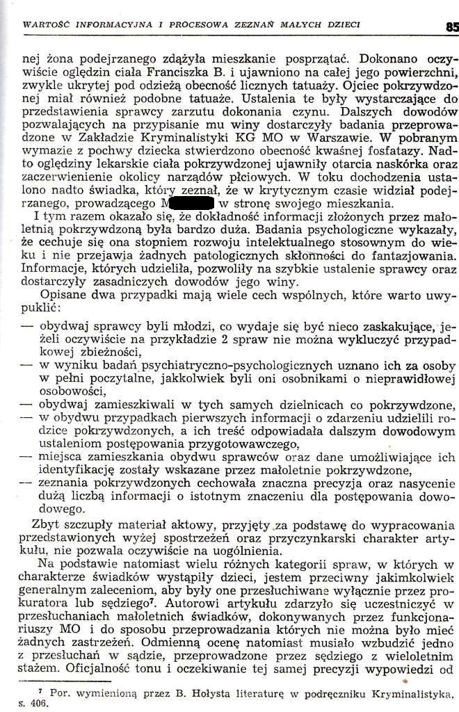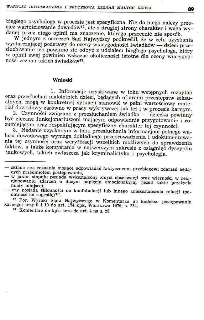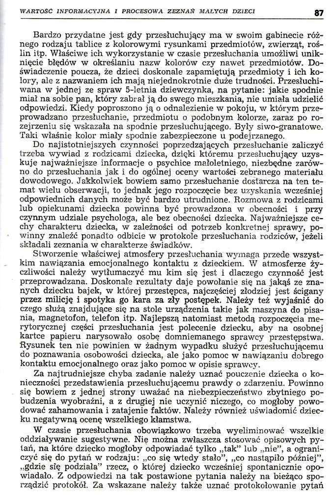 Wartość informacyjna i procesowa zeznań małych dzieci […], Problemy Kryminalistyki’ 1981