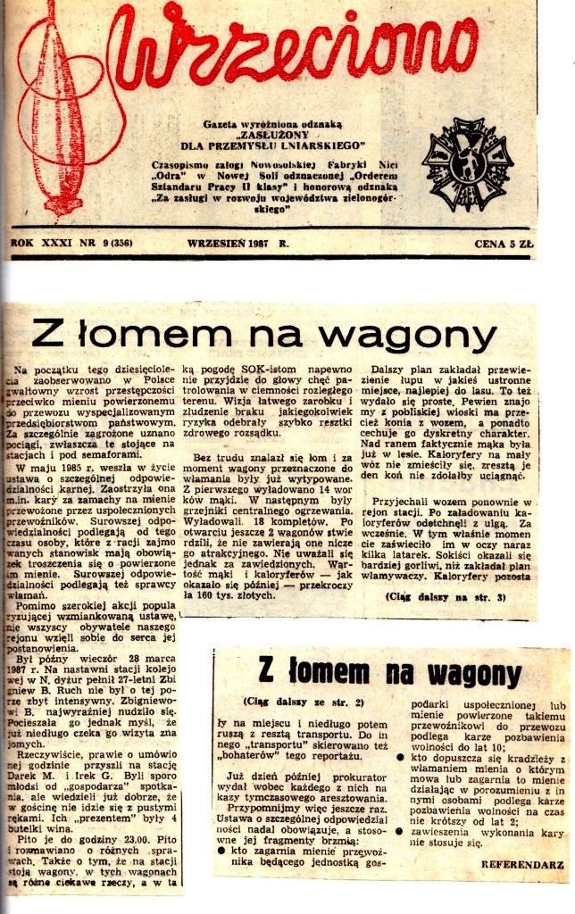 Za jedno z poważniejszych zagrożeń uważano mienie znajdujące się w transporcie. Przykładem sprawy ilustrującej problem i niektóre jego aspekty prawne jest zdarzenie opisanego we wrześniowym numerze Wrzeciona z 1987 r.